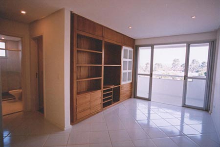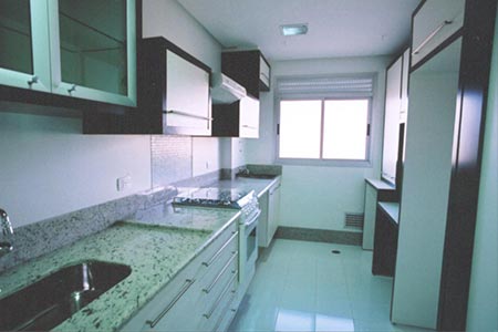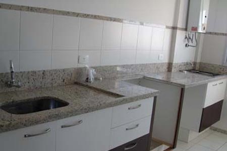 01 dorm. Sala 2 amb. com sacada. Piso laminado e cerâmico. Cozinha, wc social com box, gabinete e bancada. Armários. 1 garagem